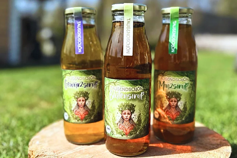 Tausendschön - das sind wir: ein junges, nachhaltiges Unternehmen mit einer großen Liebe für das, was direkt vor unserer Haustür wächst. Unsere Wiesenlimo und Sirupe stellen die oft übersehenen Wiesenkräuter in den Mittelpunkt - Kräuter, die voller Charakter, Geschichte und natürlicher Wirkstoffe stecken. Denn das Gute liegt oft so nah.
