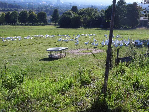 Großzügige Weideflächen für Schafe, Enten, Gänse, Hühner und Schweine ermöglichen eine artgerechte und bio - dynamische Tierhaltung.