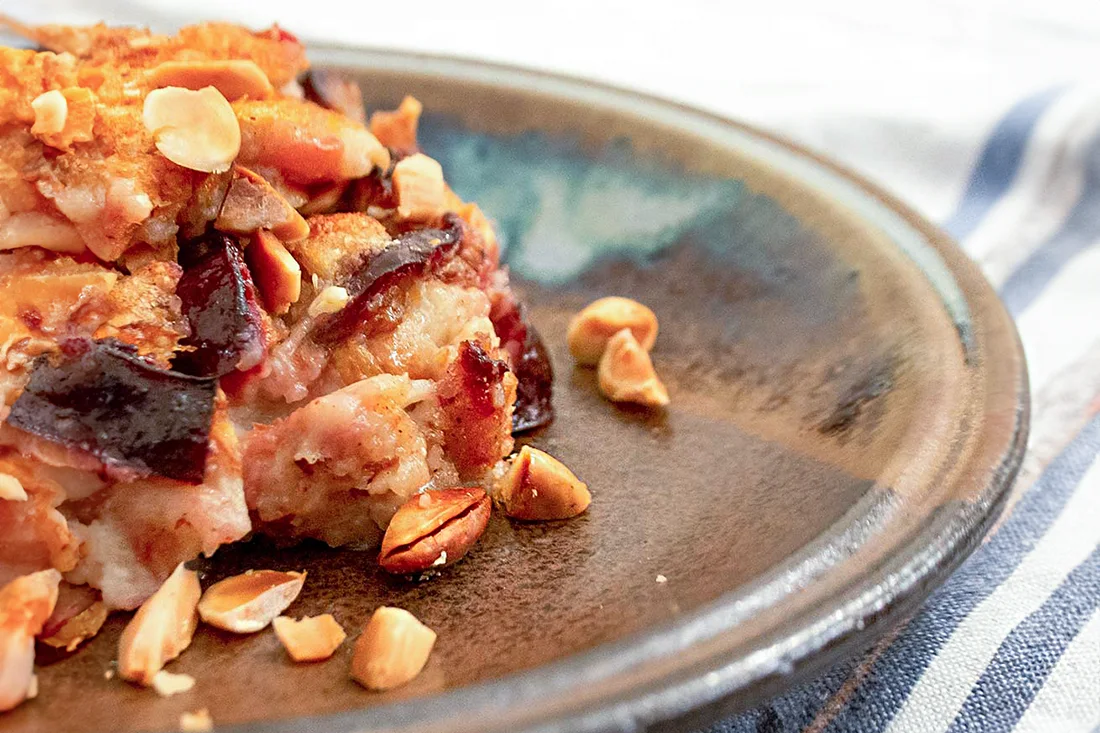 So macht ihr den süßen Brotauflauf mit Pflaumen